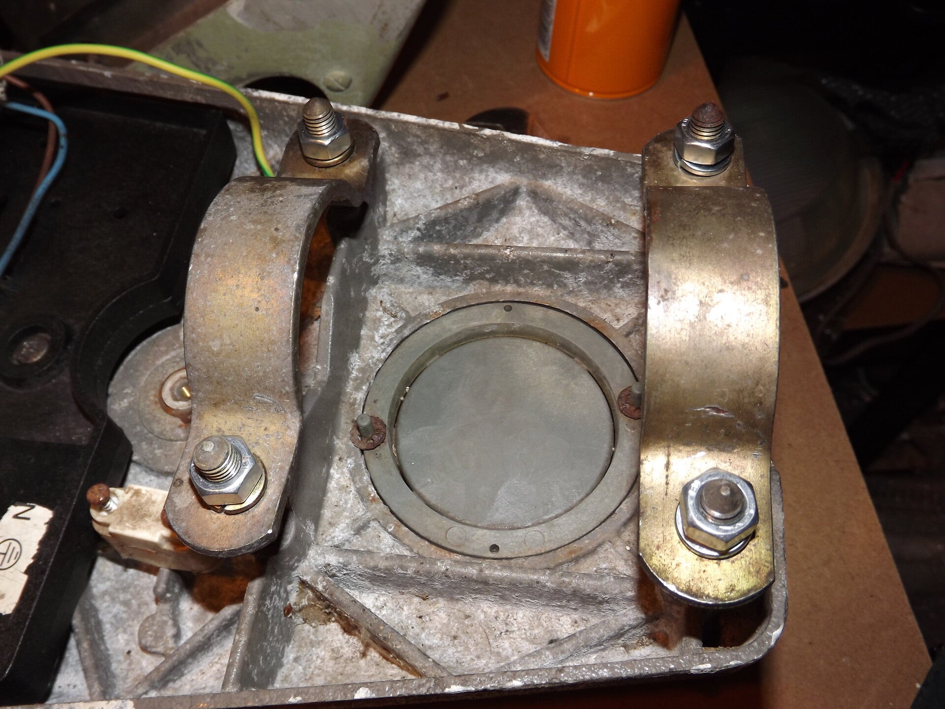 Upon opening the lantern, the strange reflector lamp-change contraption is apparent. The two springs on either side can be released, at which point the reflector and lamp-holder lift up (yet the glass remains in place).