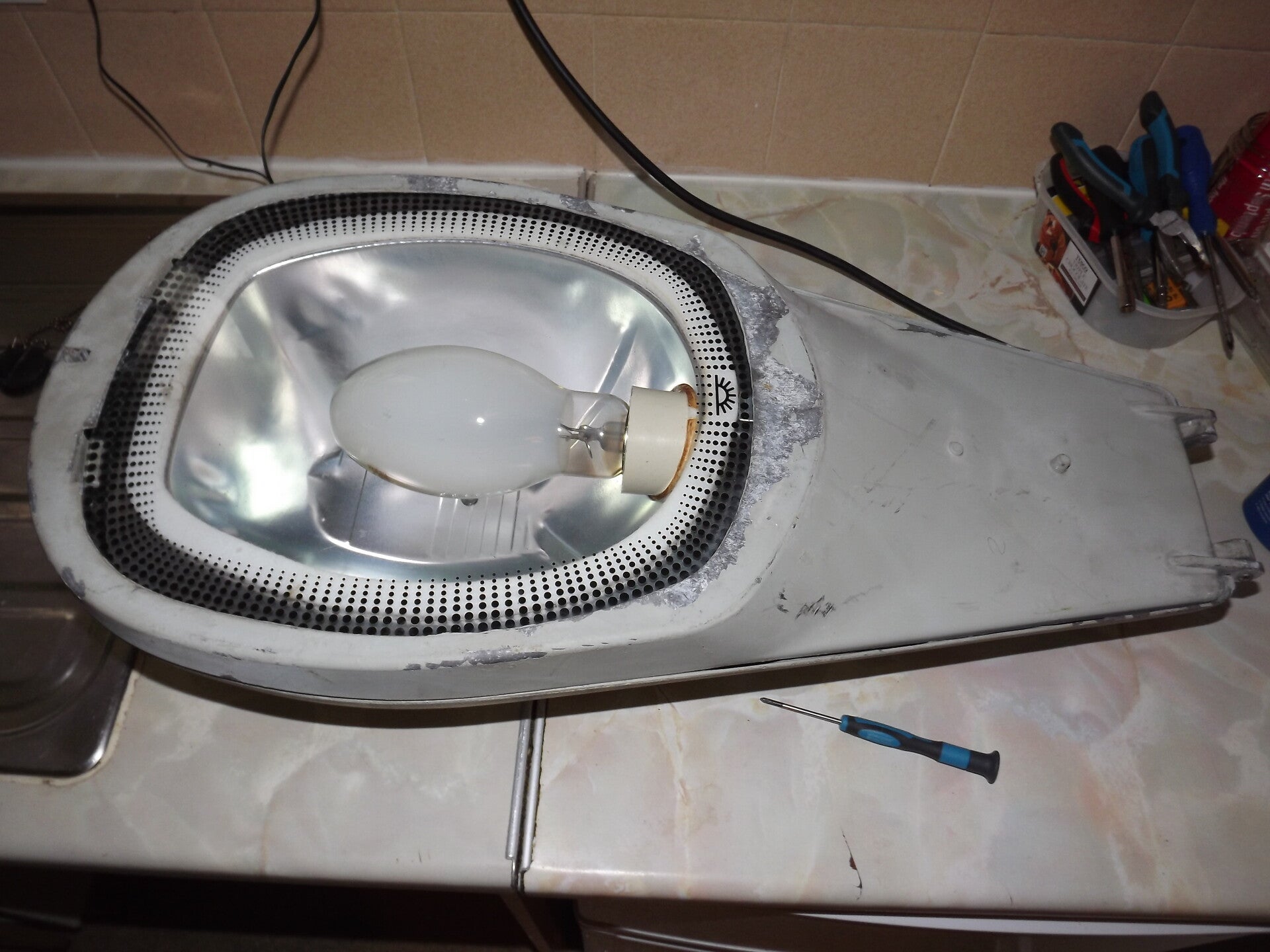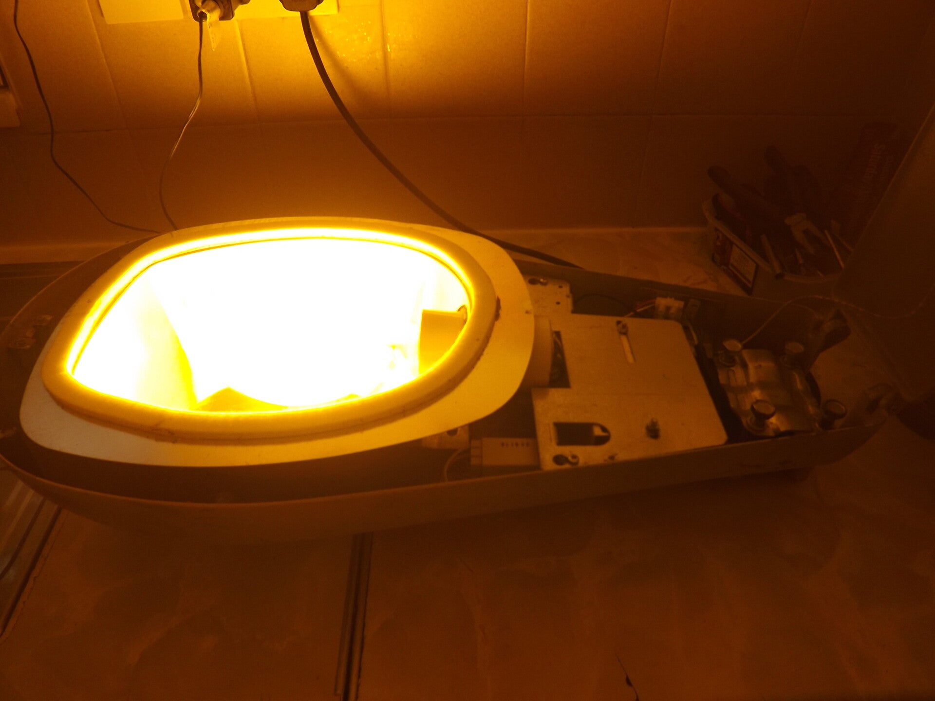 In spite of the condition of the housing, the gear and lamp were tested and worked: