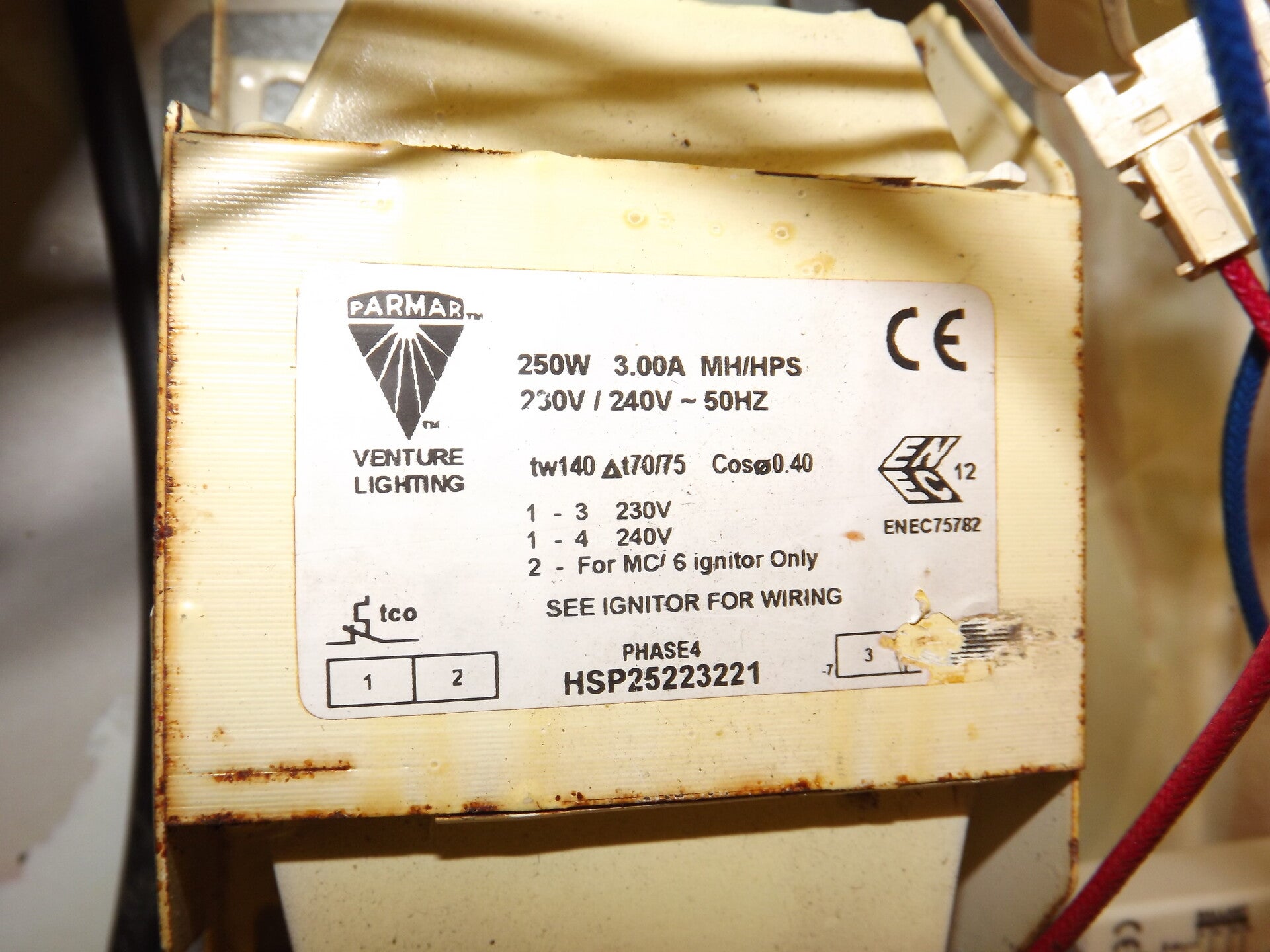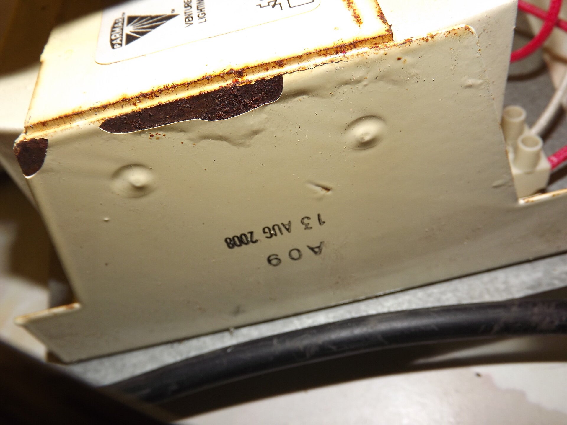 The ballast has an exact date printed on it: 13th August 2008.