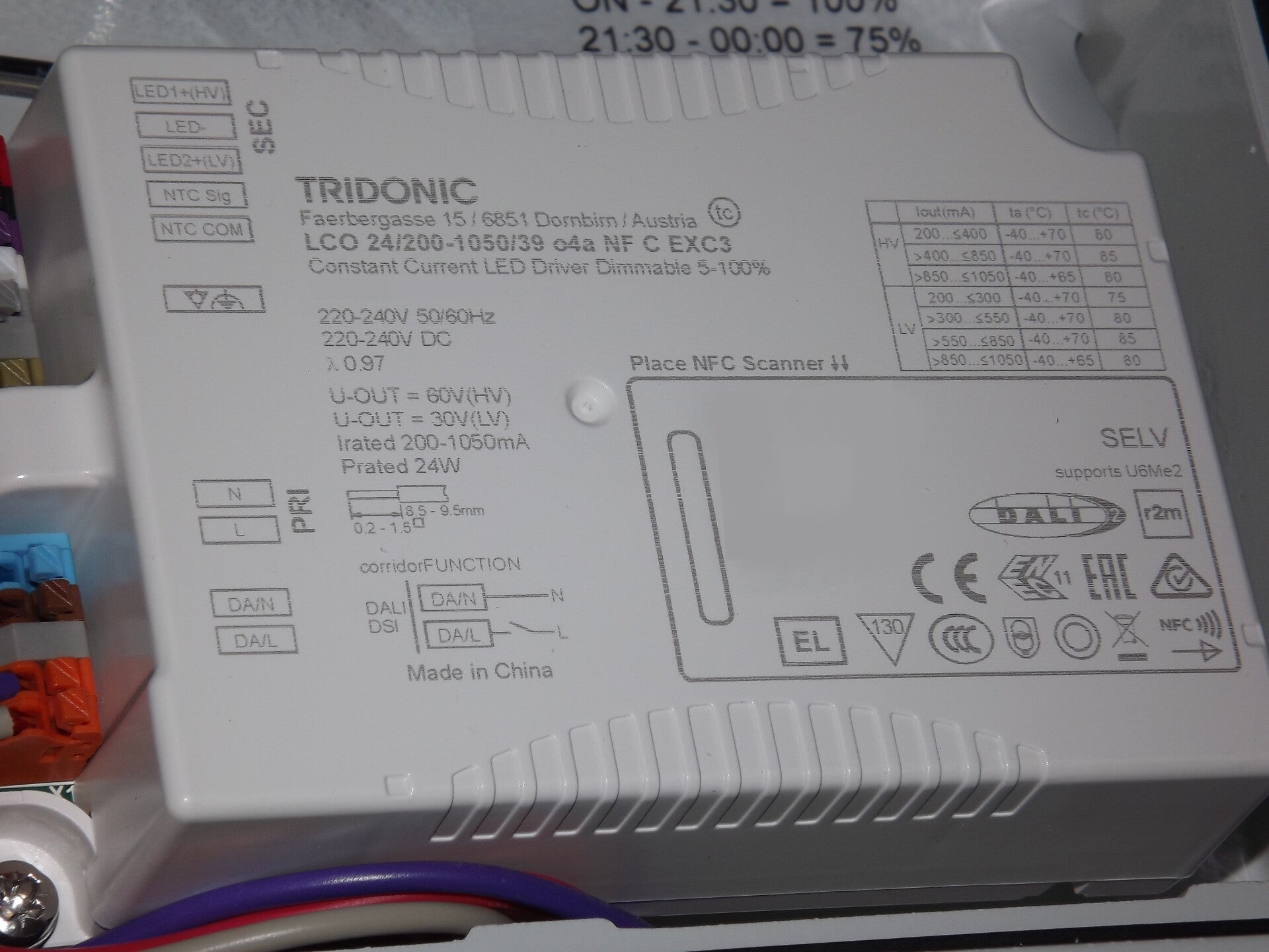 | Driver | Tridonic LCO 24/200-1050/39 o4a NF C EXC3 |