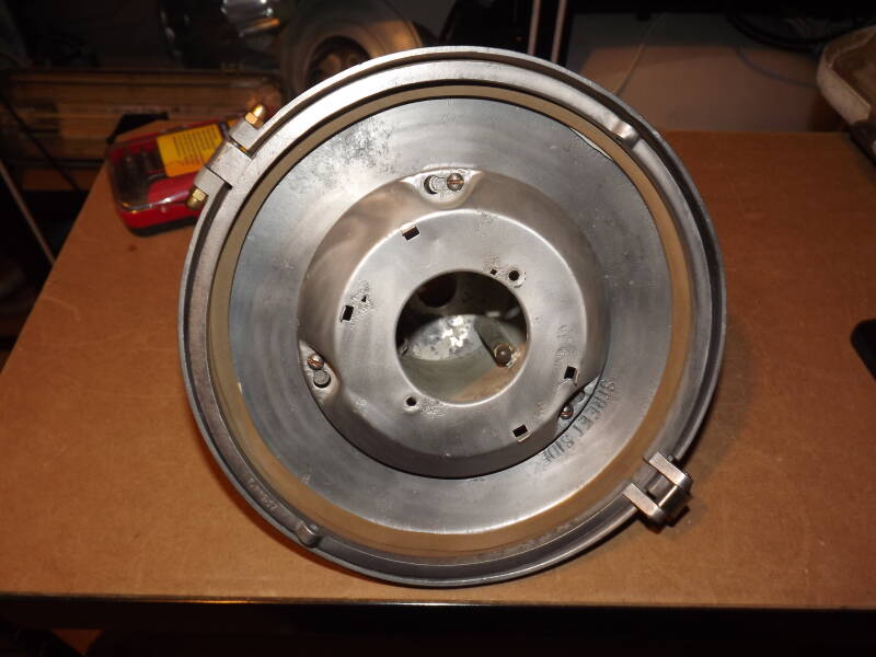 This GEC Z5590 was a relatively-cheap purchase from eBay, probably due to it's lack of a bowl. The canopy and reflector appear to have been part-restored by the previous owner, and a lamp-holder was supplied but the bracket it is fitted to is too long to fit in the lantern, and it will need to be cut down or a new one sourced. The seal also needed some new adhesive along one side which was done during photographing.