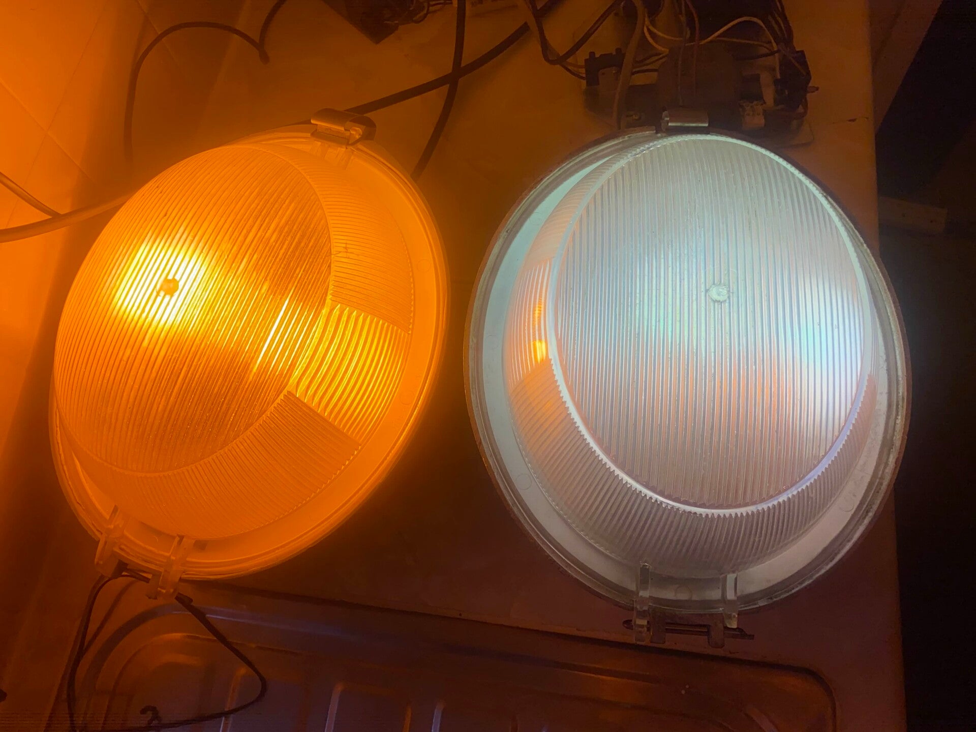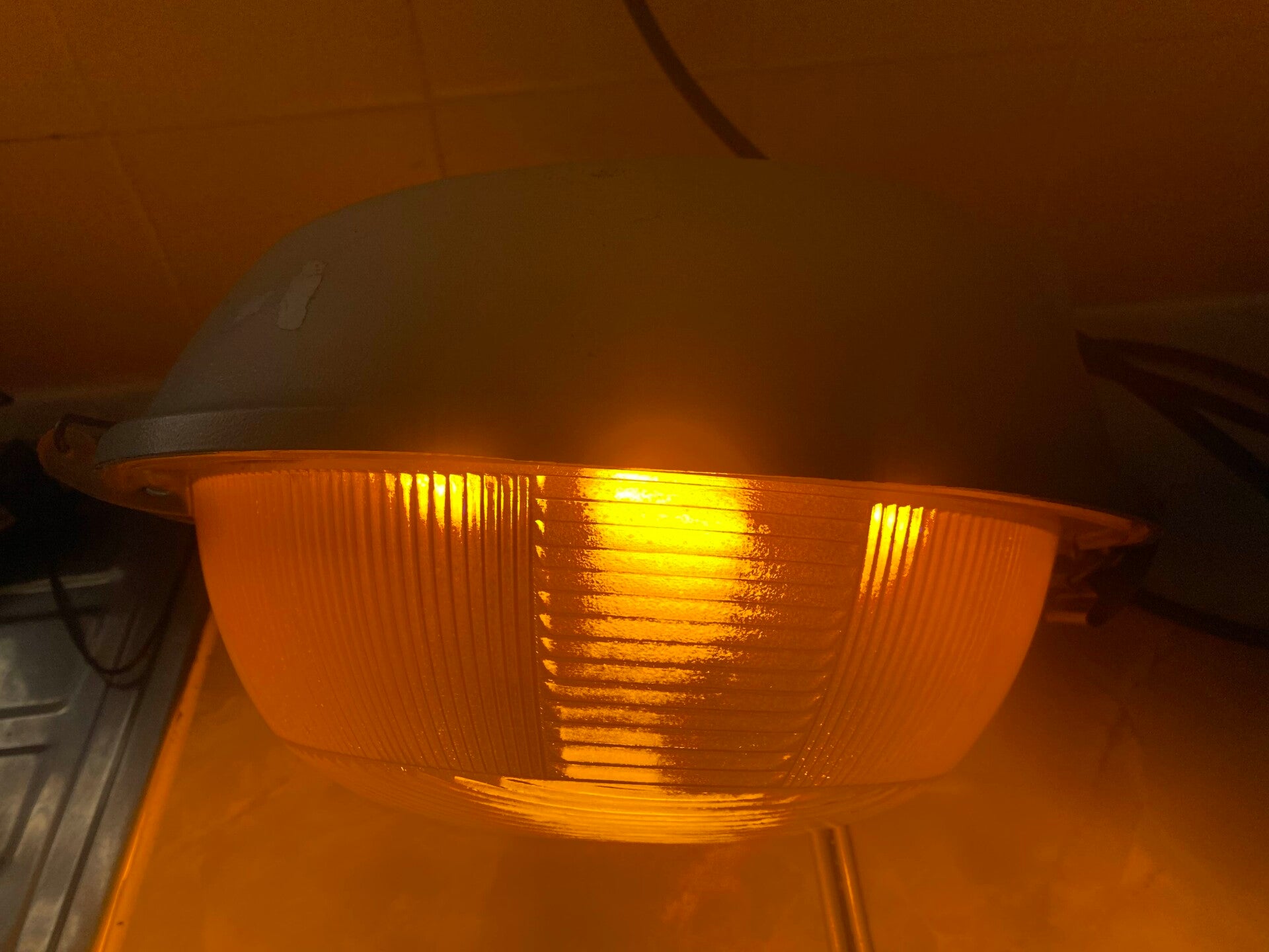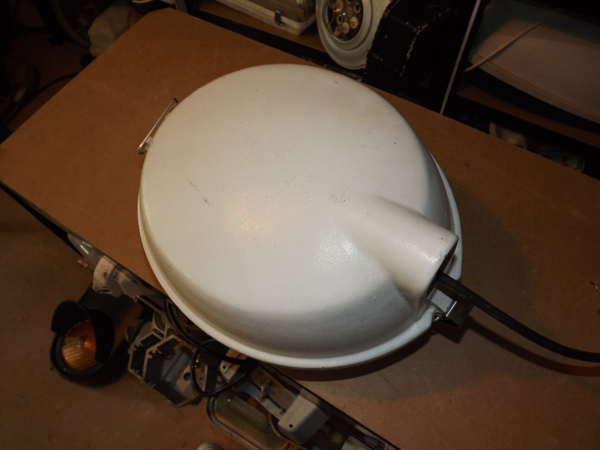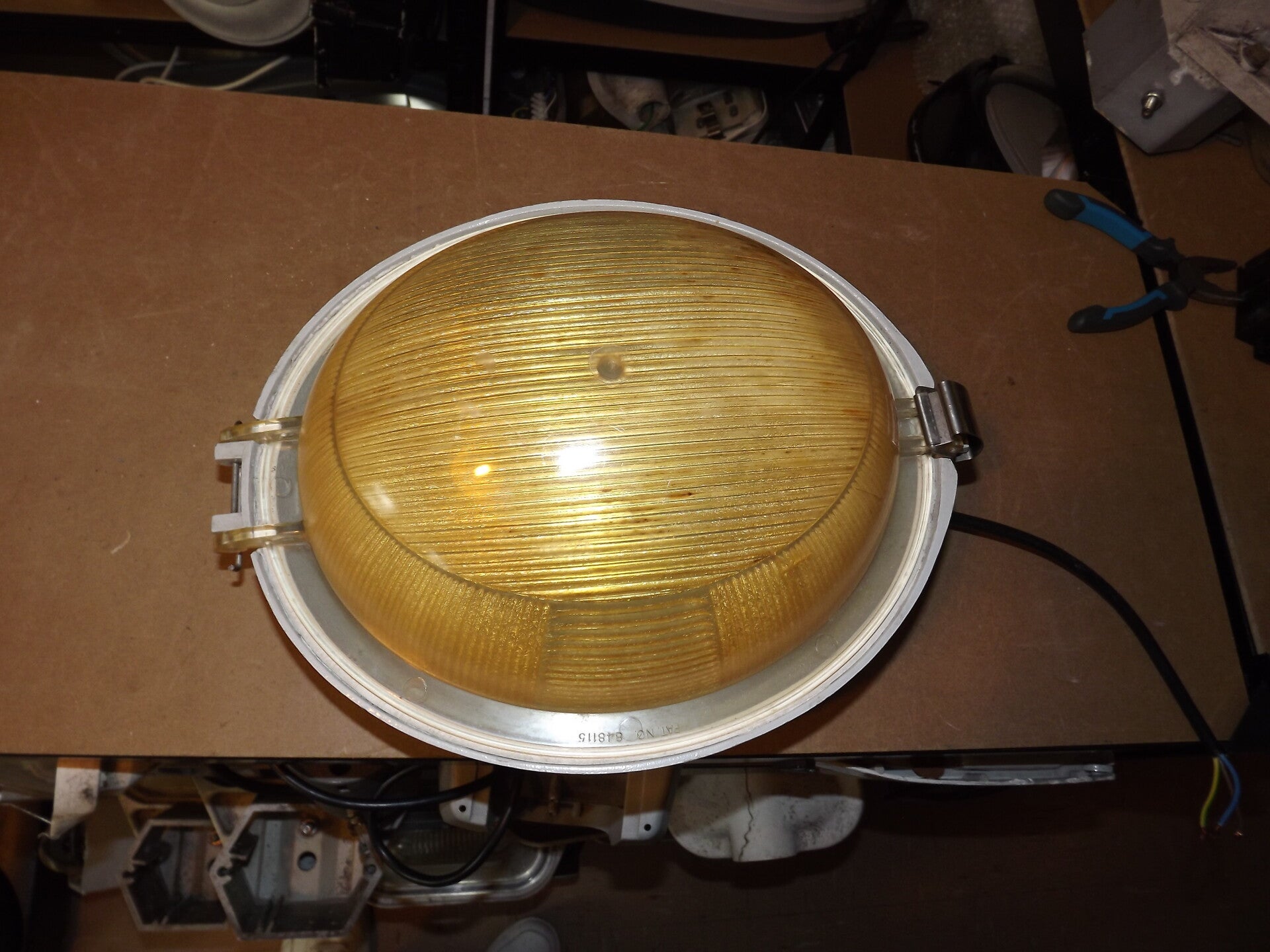 The GEC Z8897 differs from the Z8896 in that it is fitted with an ES lamp-holder for 70W SON lamps. The lamp-holder on this is presumed to be original, so it was likely made as the Z8897. Unlike my Z8896, this lantern features a polycarbonate bowl (which has suffered severe yellowing over the decades). To make this lantern rarer, it is white (and appears to have been from the factory).