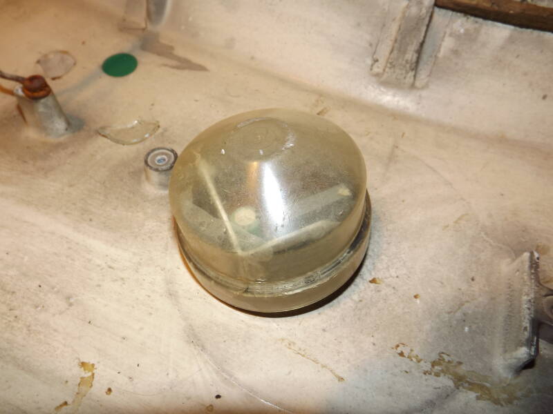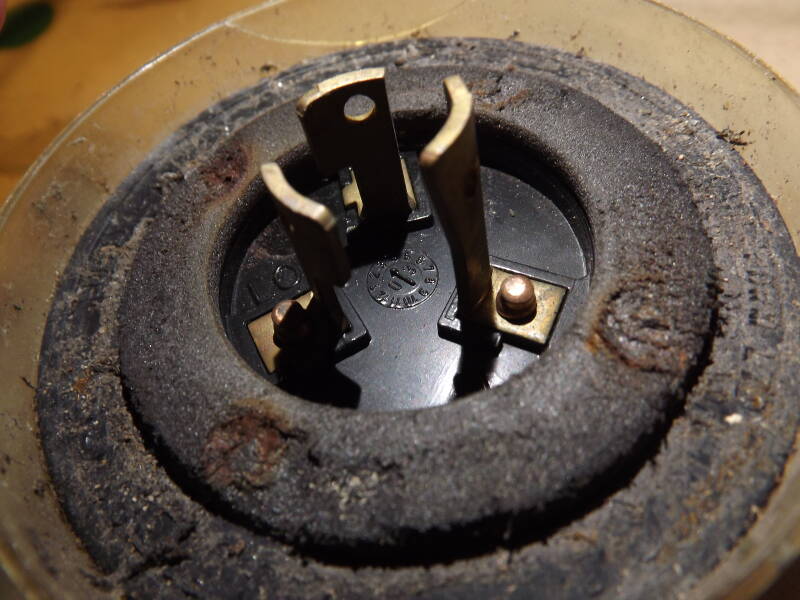 A Zodion SS9 cell was included with the lantern. Notice a piece of lamp just-behind the cell. The lantern was rinsed with water to ensure there was no sodium left, but it was assessed for stamps prior to doing this.