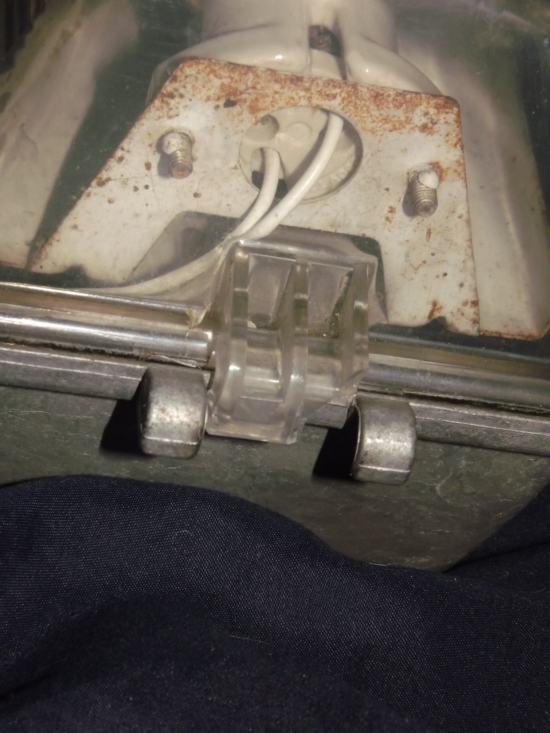 The bowl is knackered, having been shot at repeatedly, leaving holes all over, the hinge is also broken. Despite this, it somehow stayed up there and didn't fall off. Rust can be seen on the gear tray lamp holder mounter inside. Earwigs were infesting this lantern. It took me a while to remove them, but it was worth it!
