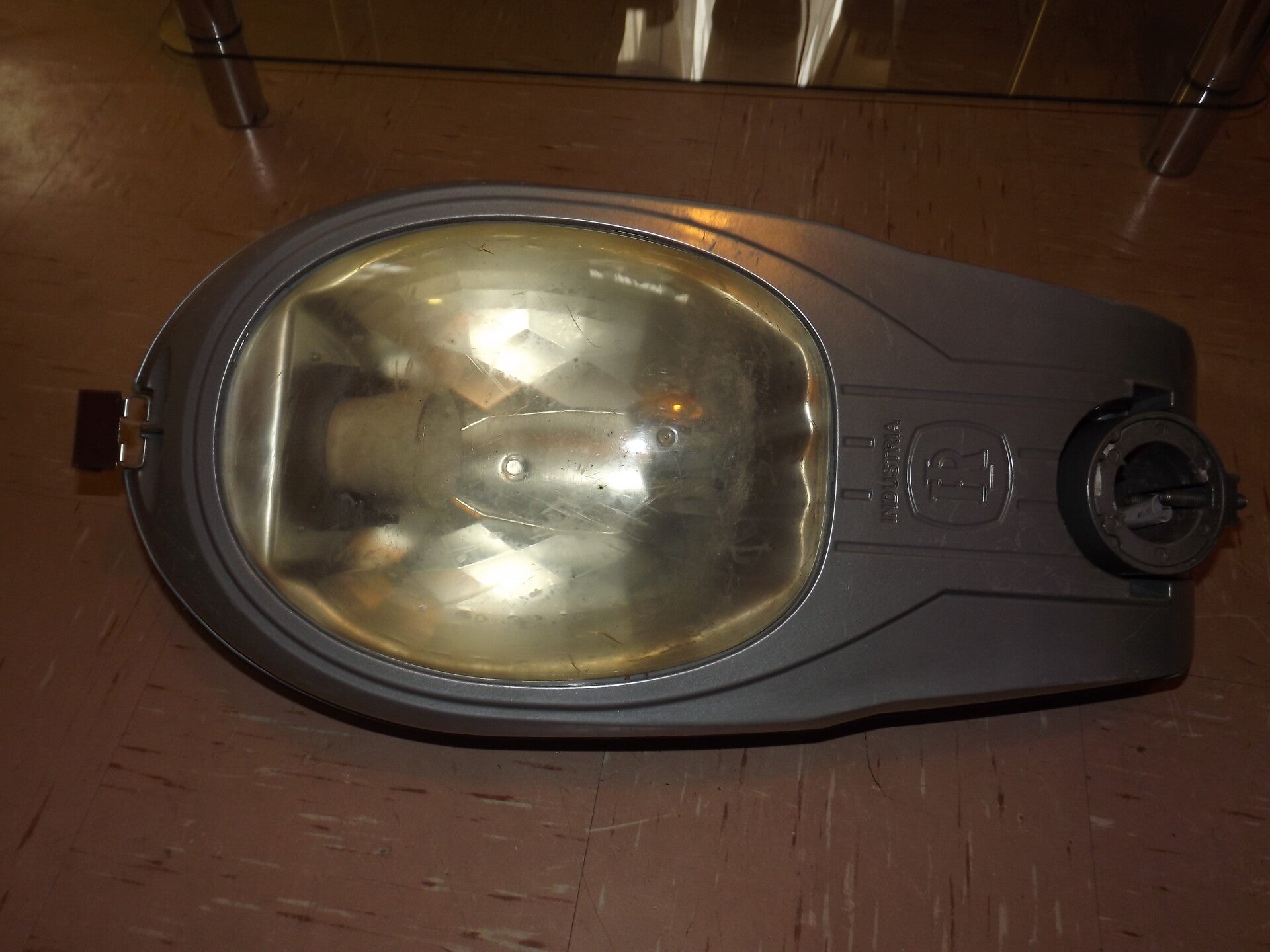 This lantern is for 100W tubular high-pressure sodium lamps, and features a deep polycarbonate bowl. This bowl is adhered to the reflector to produce a sealed unit, rivalling Urbis' ZX2/3 lanterns which ruled the roads in the UK alongside the Arc 80/90. This lantern is just a few months older than me, making it 21 years old in 2025.