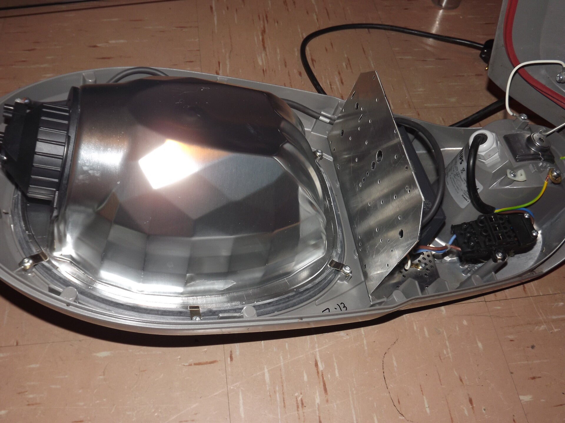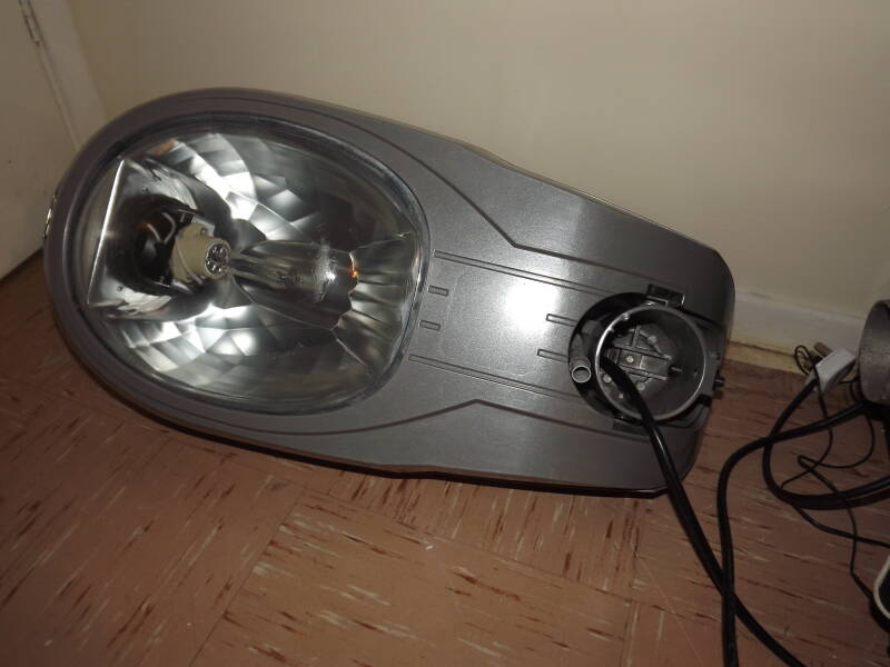 This lantern showcases one of Philips' versions of the Arc 80, after it was sold to them by WRTL. There are a few physical differences between both versions which are highlighted on this page. This particular Arc features a curved glass bowl, which is adhered to the reflector to provide a single sealed unit. The lantern was eleven years old at the time of acquisition.