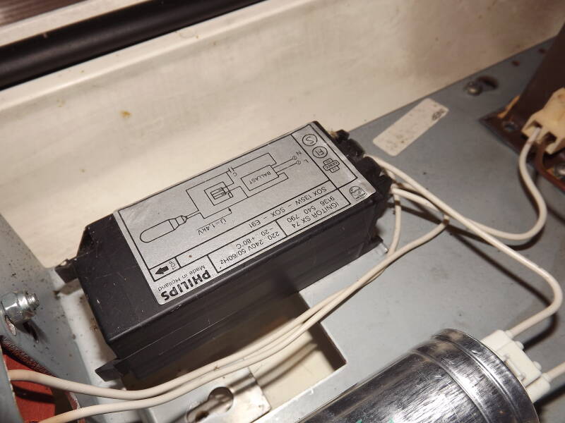 Inside, the reason for the lantern's length becomes clear. A 135W SOX lamp stretches from the front of the lantern, all the way to the gear-tray, which takes up the remainder of the space.