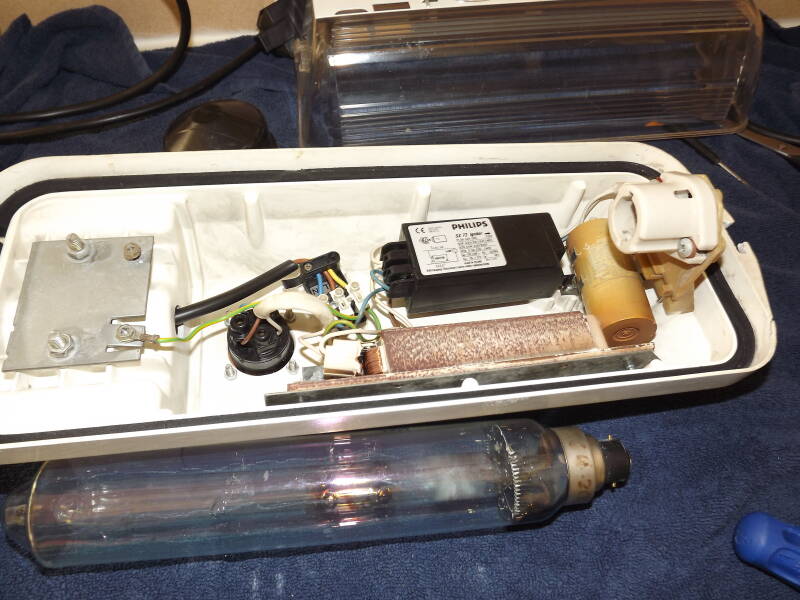 When I got this Philips MI26, it was incredibly grubby, with moss covering the canopy, so it was time for a clean up! After a lovely warm and soapy wash to the canopy, it cleared up beautifully! I re-assembled the lantern after wiping down the bowl (which was in great condition!) and it even came with a working 26W SOX-E lamp.