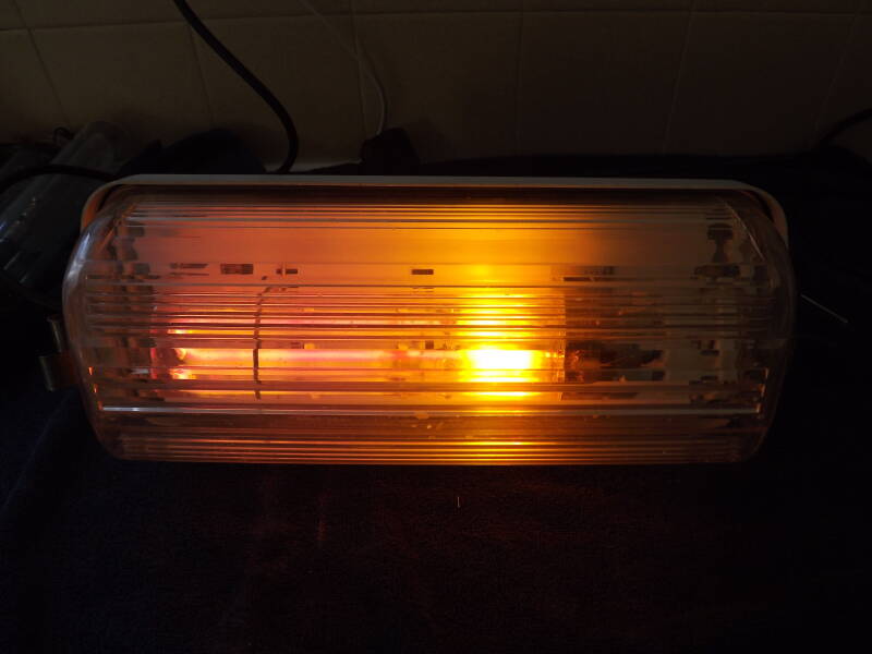 The lamp it came with is the one it will be keeping. It appears tired, but still works a treat.