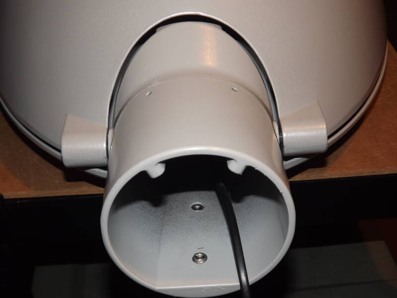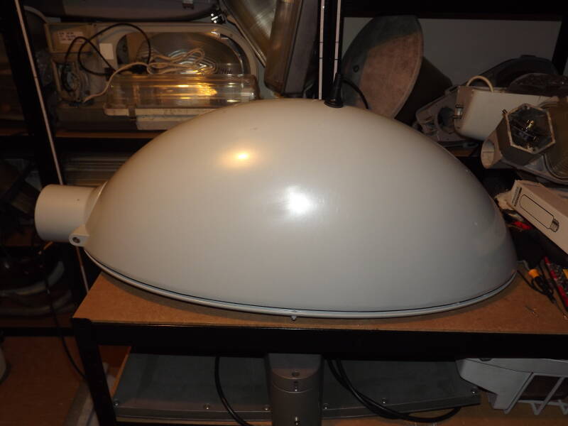 This is one of the largest lanterns in the collection. It came NOS from eBay, and I originally thought I'd bought the smaller SRS421 version... until it arrived! This example runs a 250W SON-T lamp, and is fitted with an electronic driver instead of a magnetic gear. Below is a familiar angle from underneath the lantern, showcasing the egg-shaped base. The SON-T lamp is one of my own, and was not supplied with the lantern.