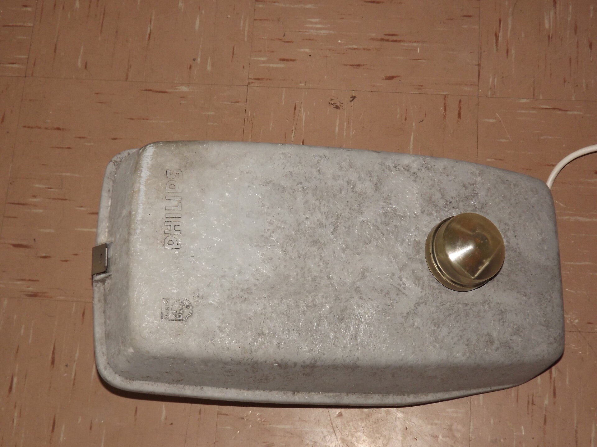 The Philips XGS201 was a lantern that could run 18W-26W SOX-E or 35W SOX (Group B roads). This one certainly shows it's age, but it is in working-order. It was mounted side-entry when in service as the post-top spigot remains undrilled. The canopy is made from lightweight GRP and the bowl from toughened polycarbonate, much like many Philips lanterns from the time-period.