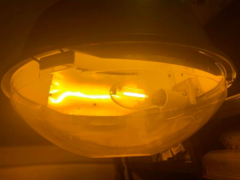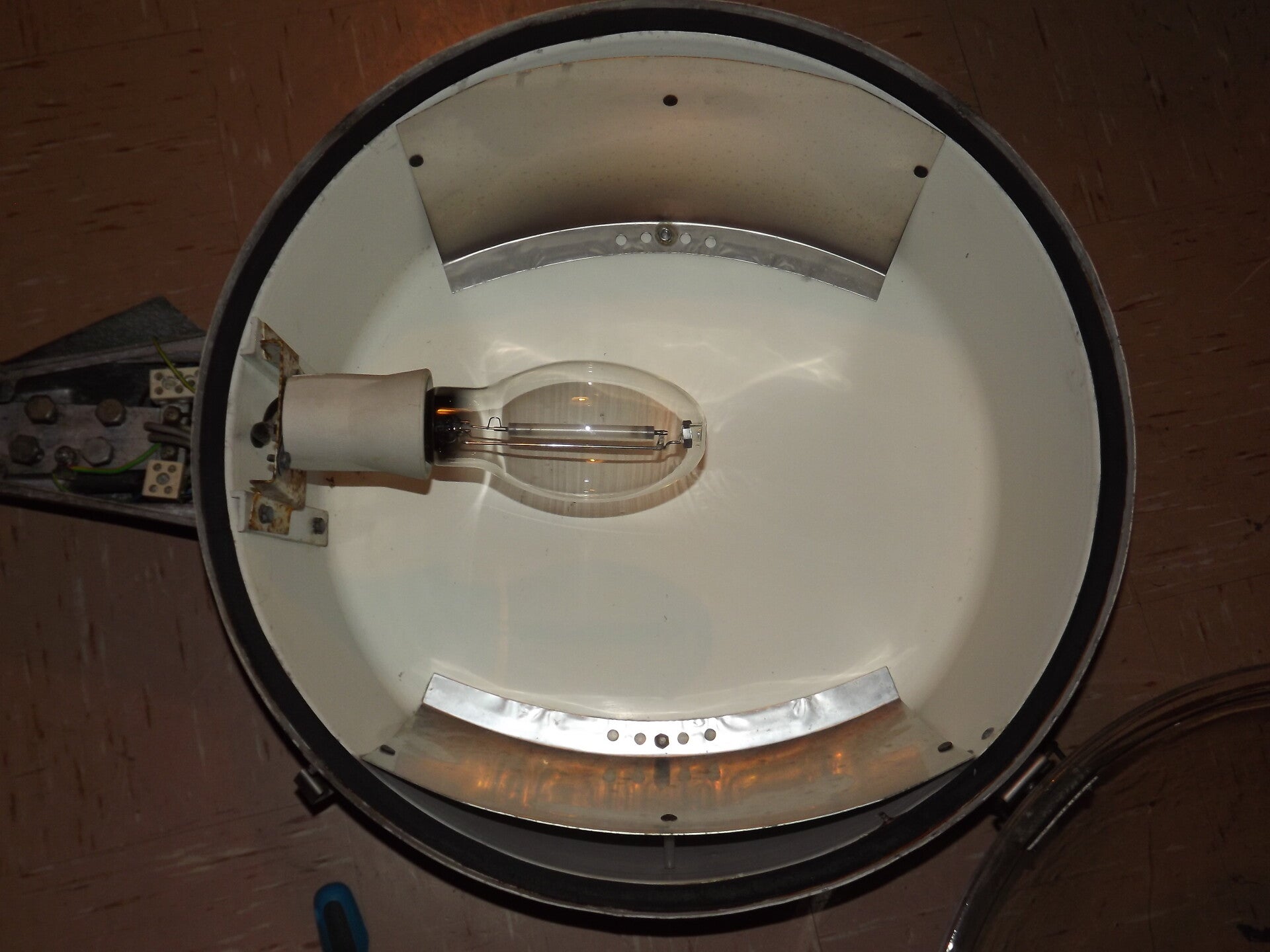 Inside is one of my SON-E lamps - 250W. Two curved reflectors situated either side of the lamp aid in light-distribution.