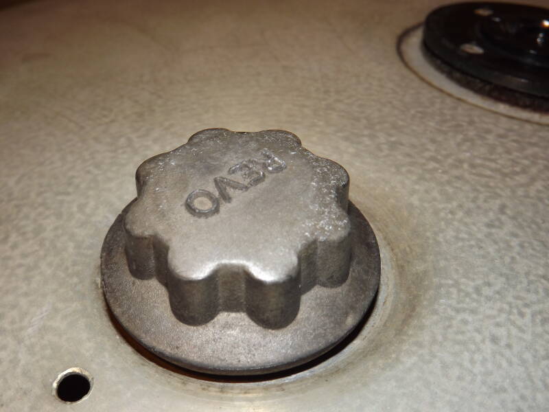 This lantern is the aluminium-canopied version of the Simplex Solumbra; they could also have steel or fibreglass canopies. This canopy also has a deeper rim than the GRP Solumbra. Notice as well the one-piece base casting on this example, where my other Solumbra has a two-part base.