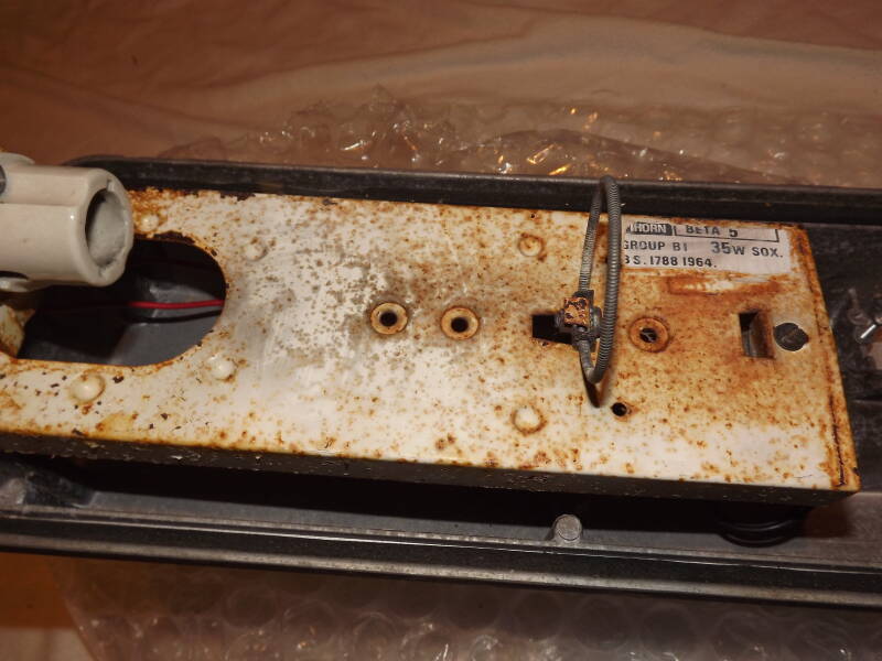 This was the third Thorn Beta 5 to enter the collection, and the second one to come with a concrete bracket. This one is a remote-geared Mk.15 Beta 5. The exterior of the lantern is in good condition, while the inside is a bit rusted here-and-there. This one will be kept in as-received condition, but has undergone a clean.