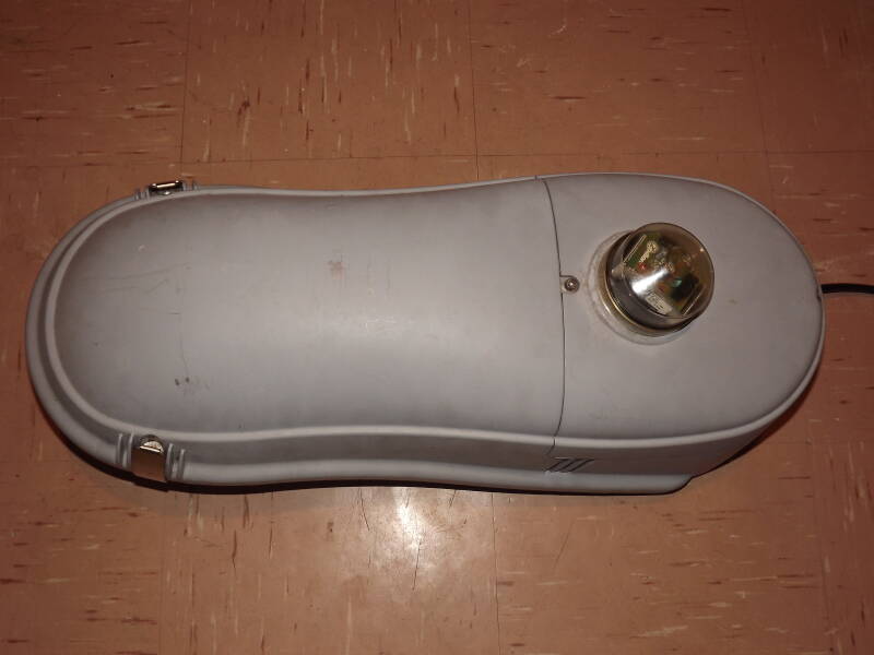 The Thorn Civic 1 was a wildly popular lantern throughout the UK. It could be used with lamps up to 150W, meaning it was used in a wide-range of applications (this one is a 150W SON-T lantern). It's aluminium construction made it a very heavy-duty and sturdy lantern, and two versions of the Civic 1 existed: the older design and newer design. Both can easily be distinguished from one-another, owing to the different shape and paint used. It's distinctive shape makes it an icon amongst the lighting community, and one of the most-well-known lanterns overall. This one is the older design of the Civic 1. This was the fourth Thorn Civic 1 to enter the collection.