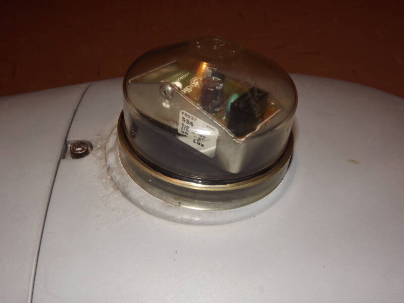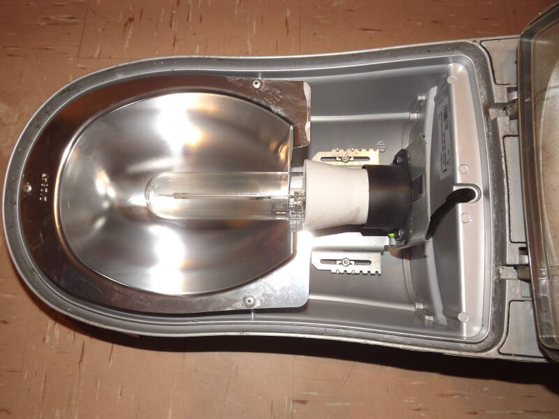 From above, the lantern is relatively clean of scuffs and corrosion, something these were notorious for in my opinion. It came with a Zodion SS6 photocell seen on the back plate in it's NEMA socket.