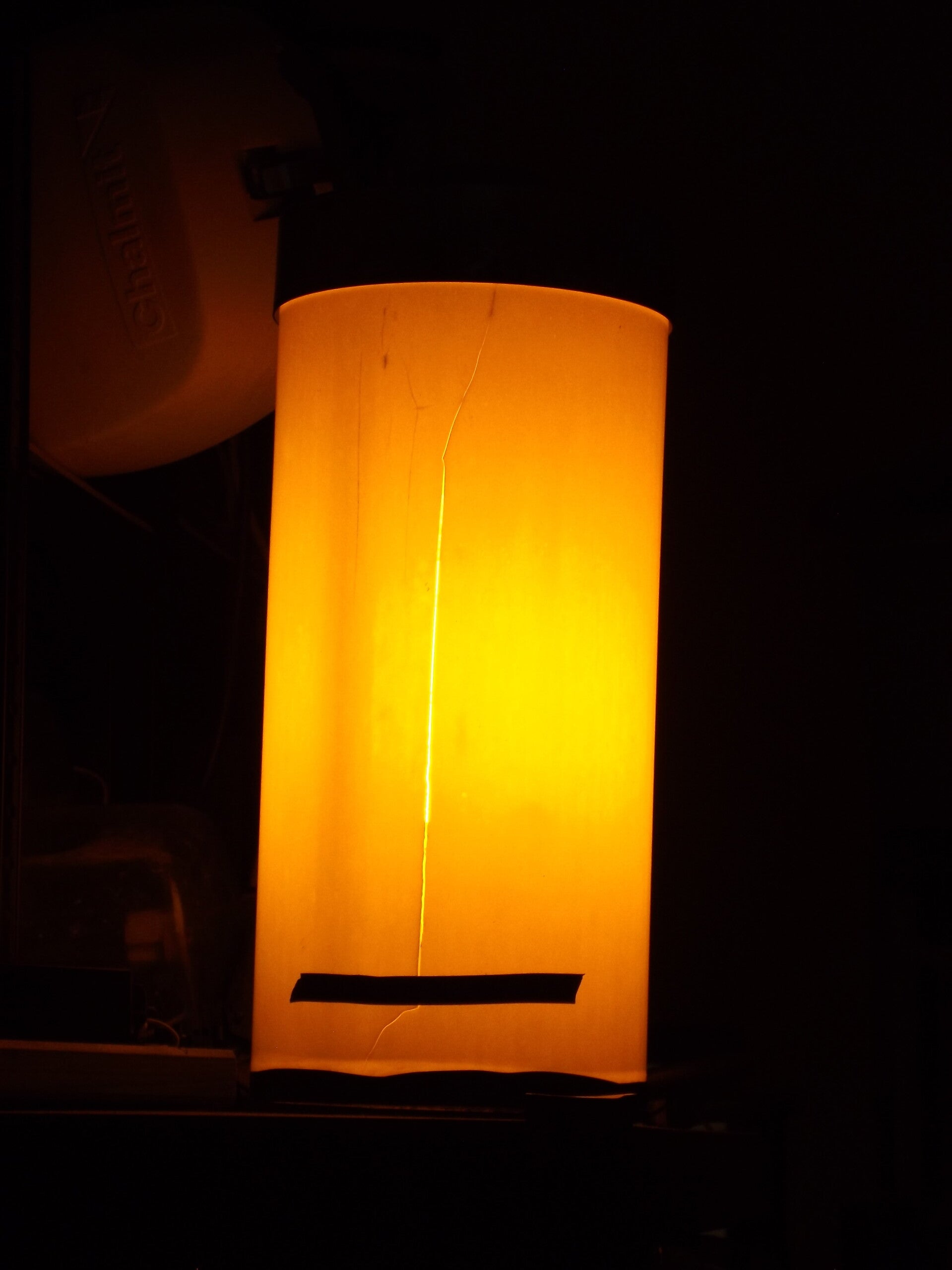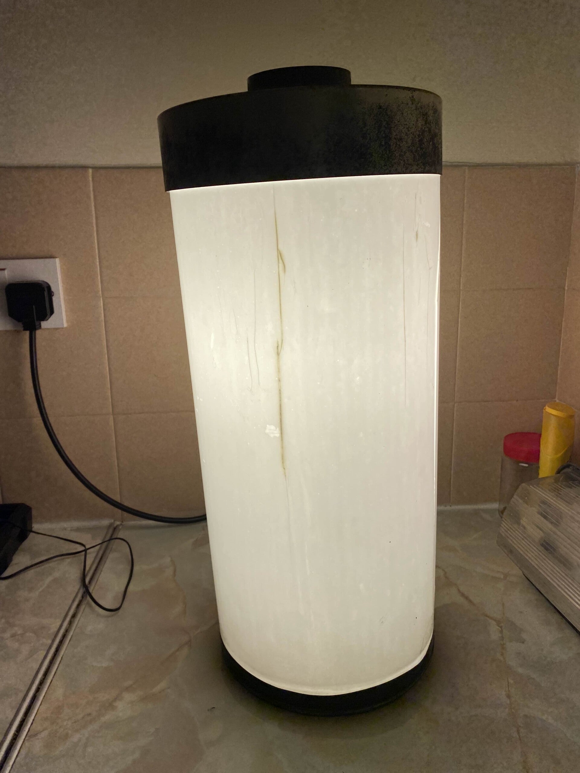 With the lid and cover removed, the Gamma 9's simple structure is obvious. Essentially, this version of the Gamma 9 is just a tube of acrylic with a lamp inside.