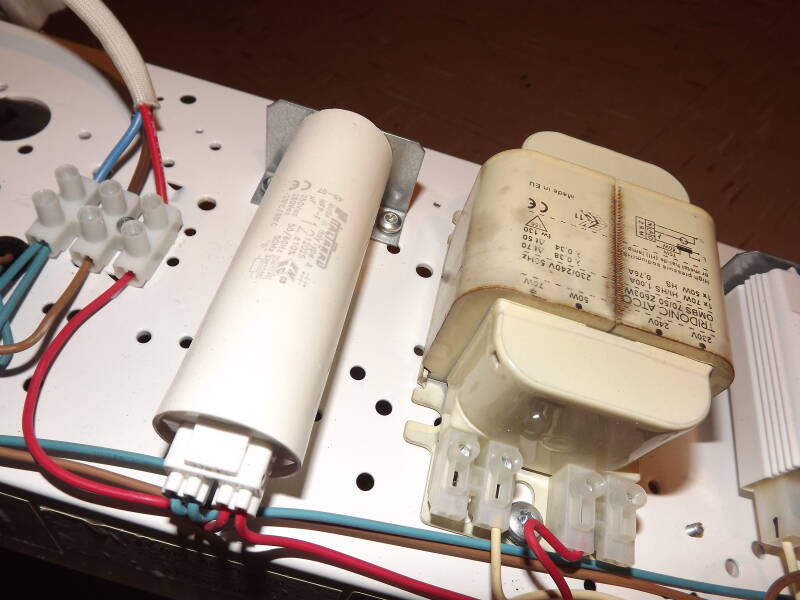 The gear-tray is in good nick! The gear consists of: a Tridonic ATCO OMBS 70/50 Z603W ballast, a Tridonic ZRM 2-ES/C ignitor and a Italiaral Type A 12μF capacitor.