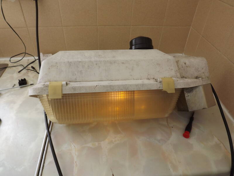This 2600 can accept 50W-70W SON-T lamps, but is wired for 50W SON-T. For its age, it is in great condition, and the inside is immaculate. While it was cleaned inside, this was not really necessary, and was more a process undertaken for reassurance that there were no creepy crawlies left in there. It was mounted post-top when in service, evident by the hexagonal spigot piece.