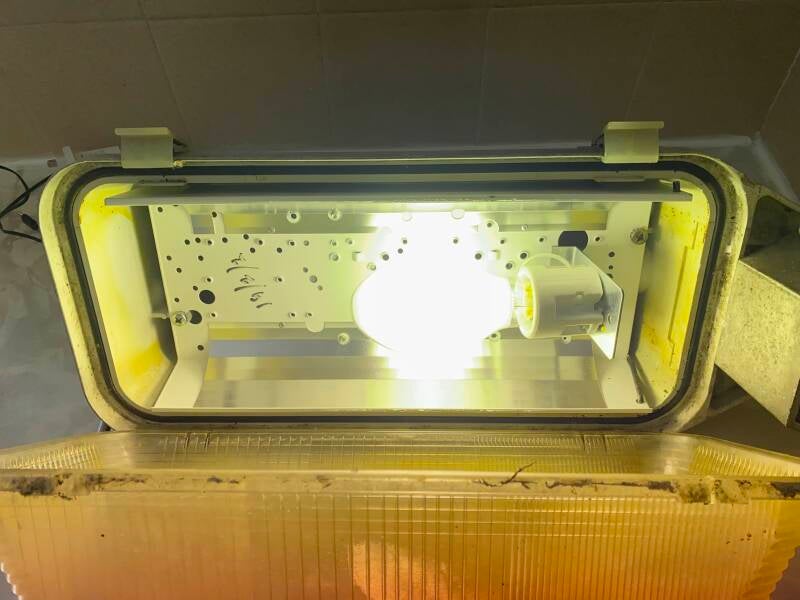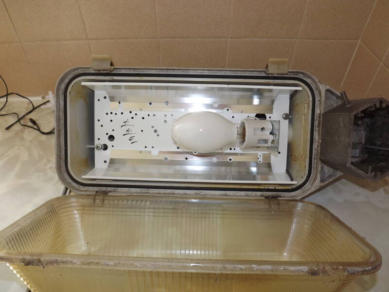 The below images showcase the lantern before and after its lamp-swap. Notice the 19/02/2002 date written on the tray. This is likely the original installation date.