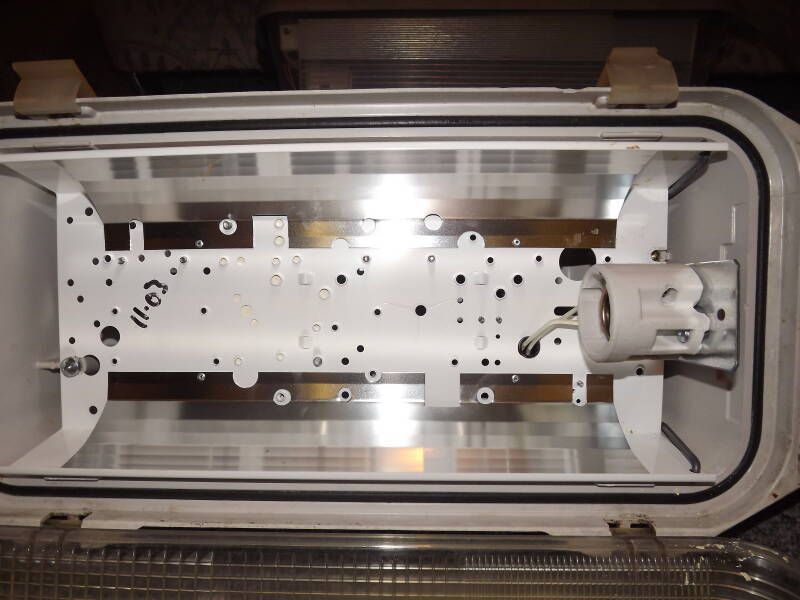 The lantern was tested but would flicker rapidly. It turns out the photocell socket was waterlogged with mud, causing a loose connection between live in and live out, which happened after it's removal. The socket was disconnected and the lantern was tested again, This time, the lamp sprung into action without protest (image coming soon).