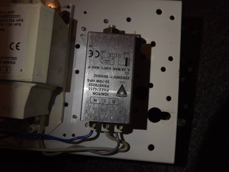 A closer look at the Parmar HSZ57223221 Ballast, operating on a frequency of 50Hz. A 4th April 2003 date code can be seen toward the connector terminals.