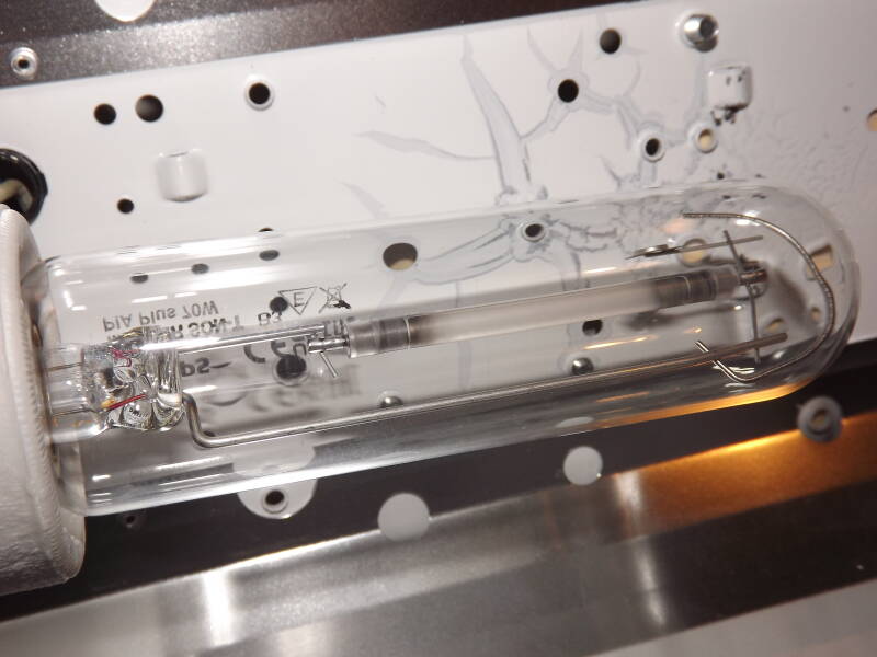 The lantern was powered on shortly after, and after a slightly-sputtery start, the arc tube stabilized and the lamp warmed up.