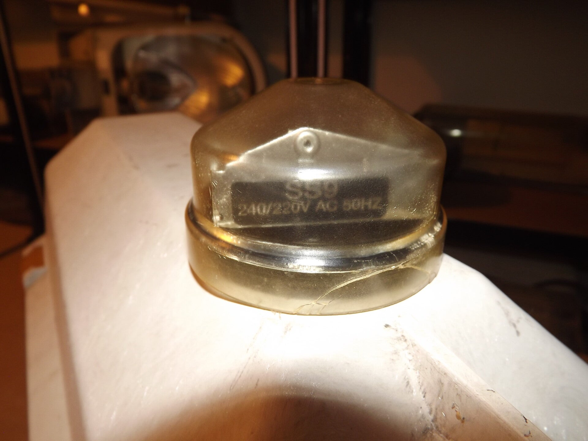 Fitted is a Zodion SS9 photocell, dated November 2005. This means it is probably original to the lantern.