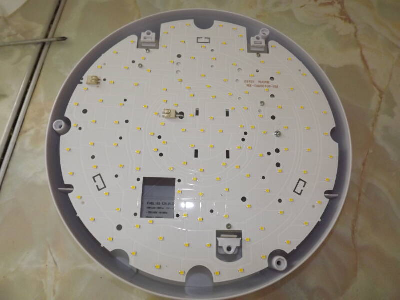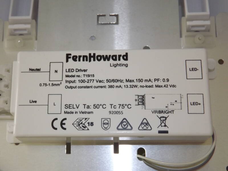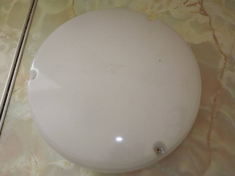 This 13W bulkhead was purchased as spares and repairs from eBay, with another non-working LED bulkhead coming with it. A new gear-tray should get this light going again, as with the other. It features an opal diffuser, and shows very few signs of age. The diffuser is held on by three screws, located at each 1/3rd of the circumference of the diffuser.