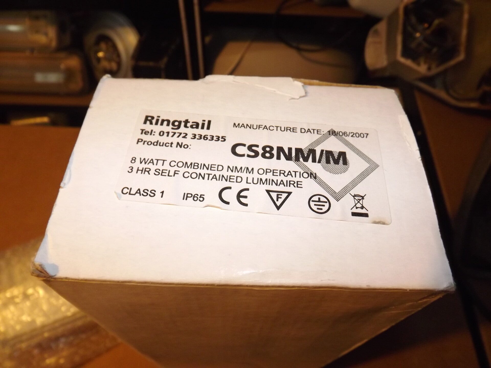 This luminaire was received from collector AgentHalogen_87, brand new in the box. It runs a single 8W T5 tube, and is tested and working. This was my first emergency fixture, and can be switched between non-maintained and maintained modes depending on the intended application. As I have this in maintained mode, it is the CS8M, instead of the CS8NM, although this distinction is based solely off of the mode selected.
