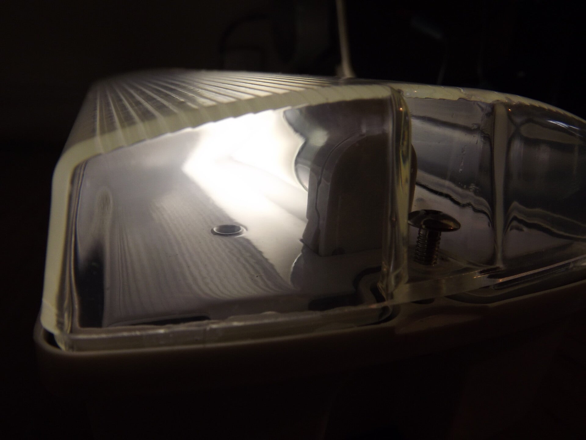 Several screw placeholders are dotted around the top of the body, for mounting. One either side for wall-mounting, and four in the centre presumably for ceiling mounting.