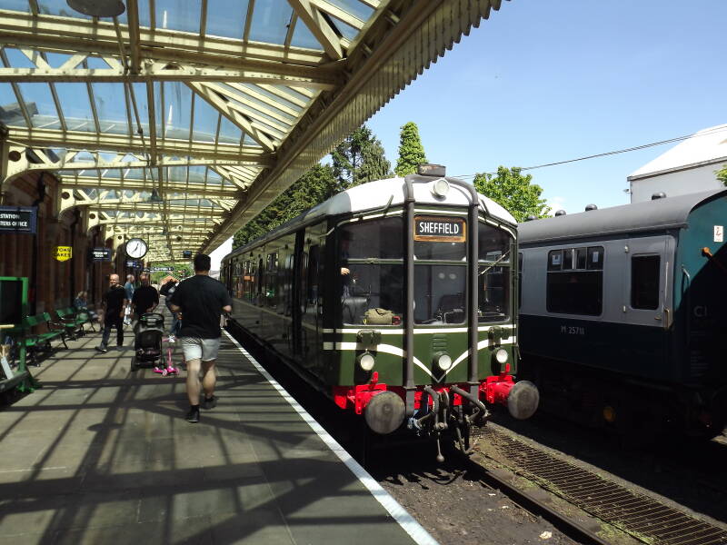 A Derby Lightweight single car unit (built between 1954 and 1955 as the first major-production DMU type built by British Railways) arrived at platform 1 just as we were on the way back to the main station.
