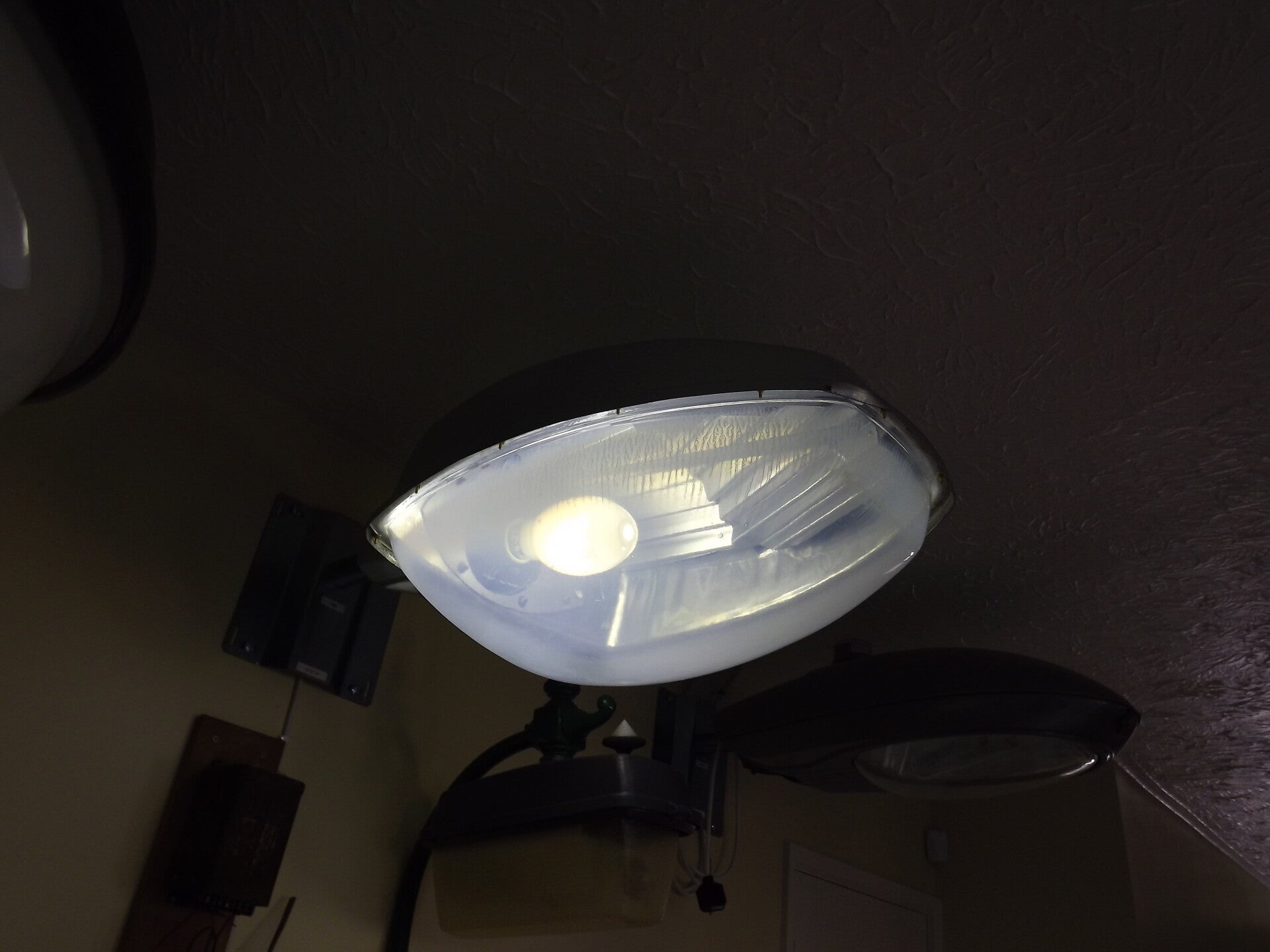 The Difractor was given the opportunity to warm up. Due to the populated nature of the wall, the ZX1 below prevents the Difractor from opening much, but the 250W MA/V lamp was still visible through a small gap where the clip would go (image 6).