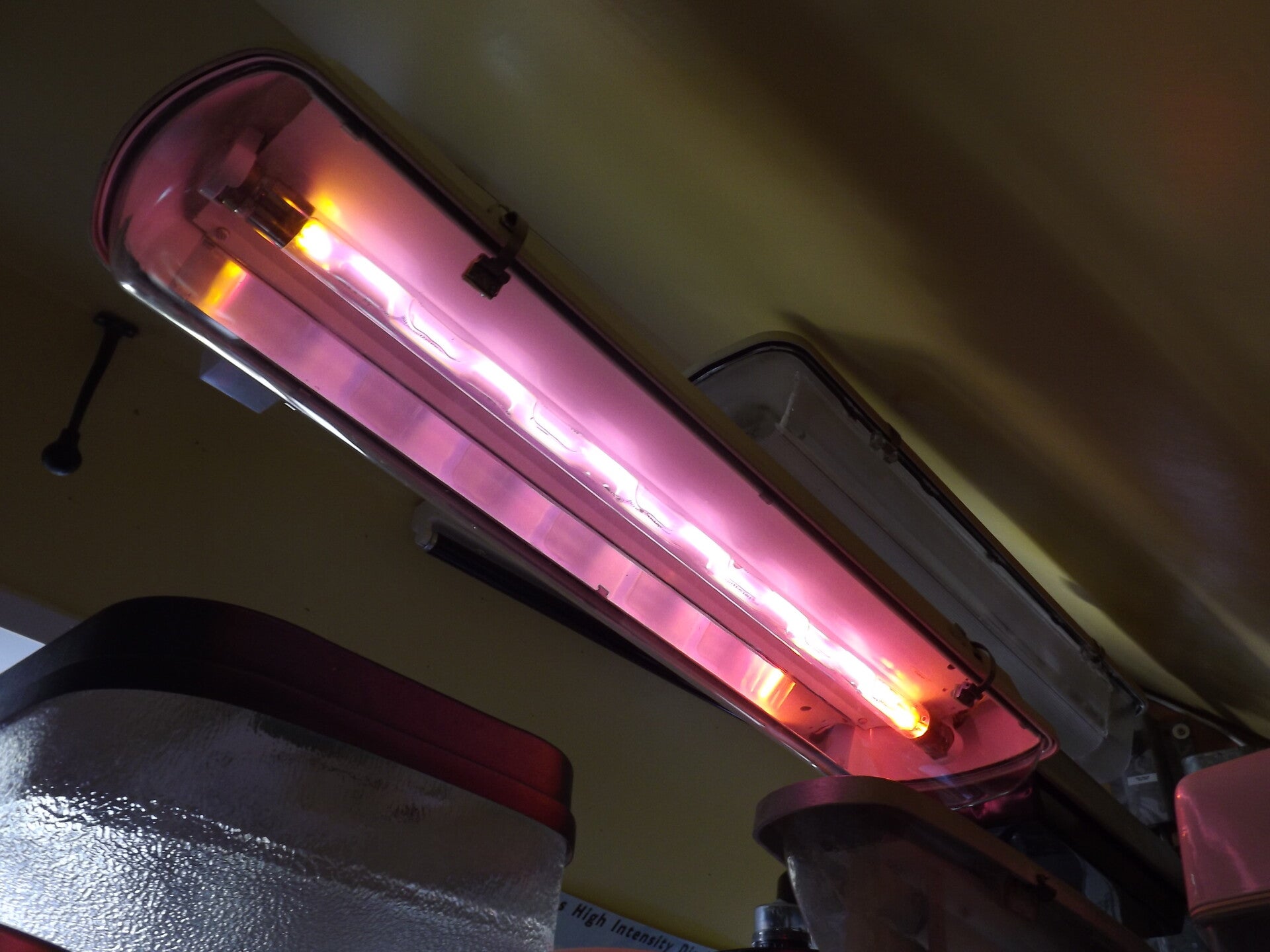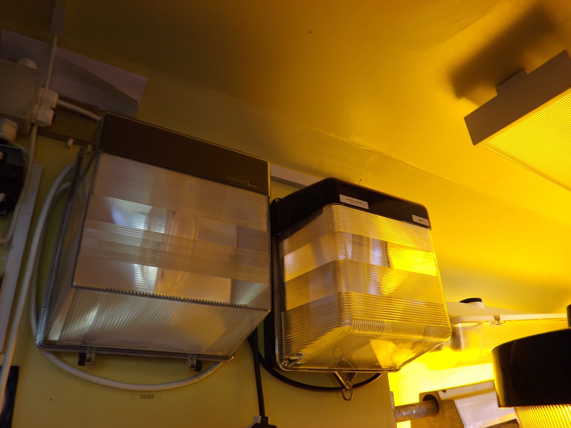 Installed next to the Amber Minor is this Atlas Alpha Three for 250W MBF lamps. This one was also warmed up. Later on, I would also get to see another Alpha Three fired up, this one a Thorn Version.