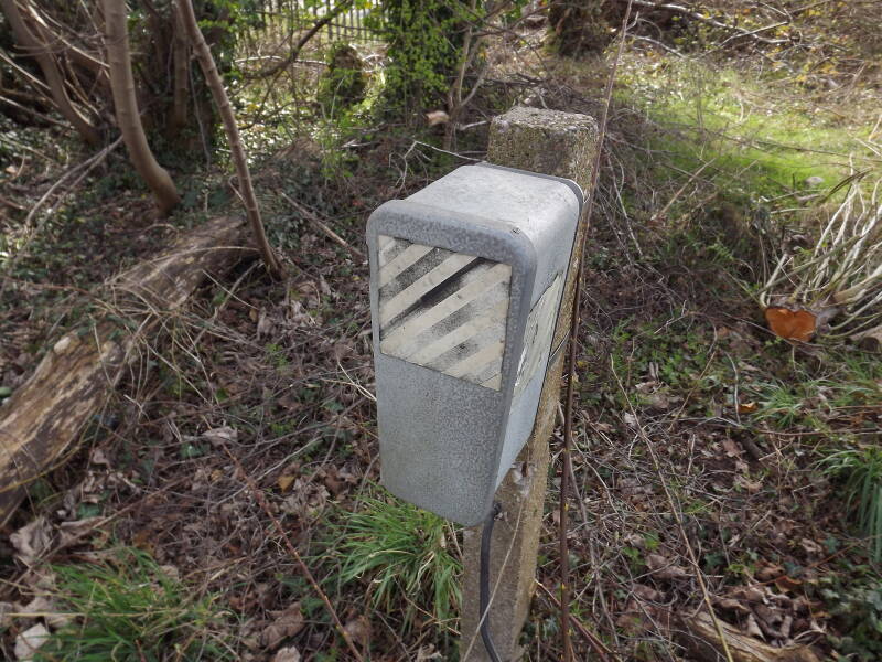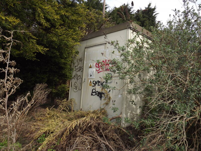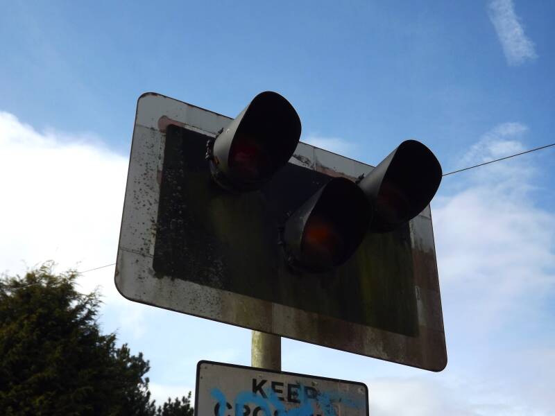 And this brings us to one of the highlights of the trip: Fosseway Lane Level Crossing. Now entirely abandoned - but the four signals and control cabin are still in place. I'm unsure as to the current status of the cabin and signals in December of 2025, but the council were pretty adamant during an enquiry by Mike Barford that the signals at least would remain. The following pictures of the crossing were taken on different dates, not just on this one visit. The south-east signal was almost entirely consumed by nature.