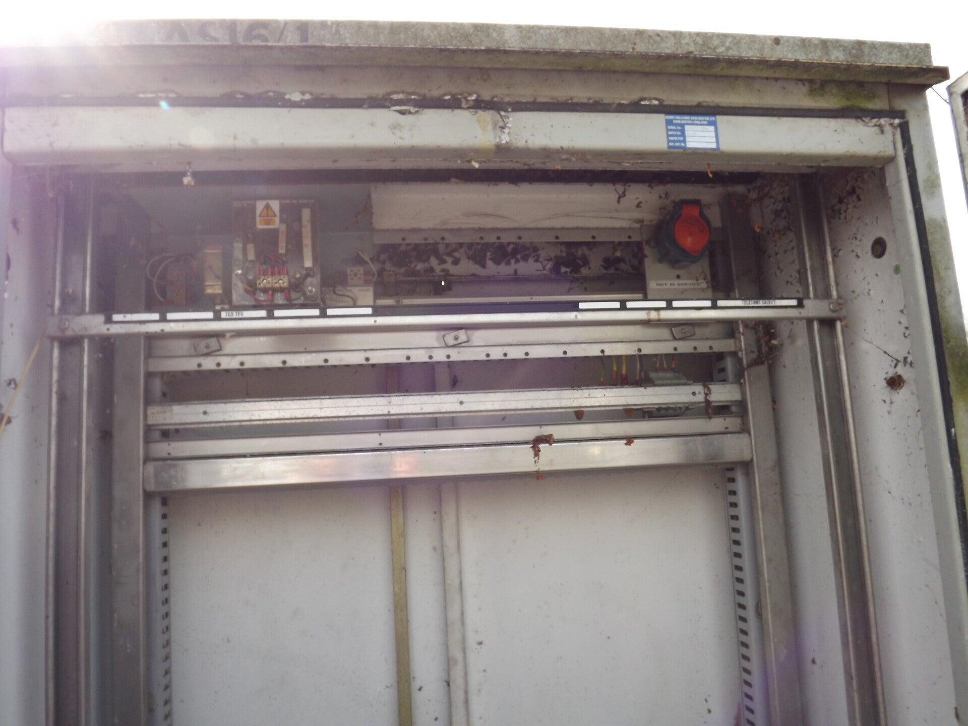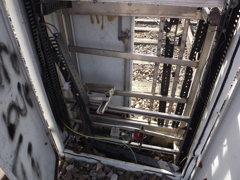 The next one did not need to be opened! One of the corners of its door had been ripped off entirely. I believe this is some kind of switchgear. I would pose a guess that the can was not integral to its function.
