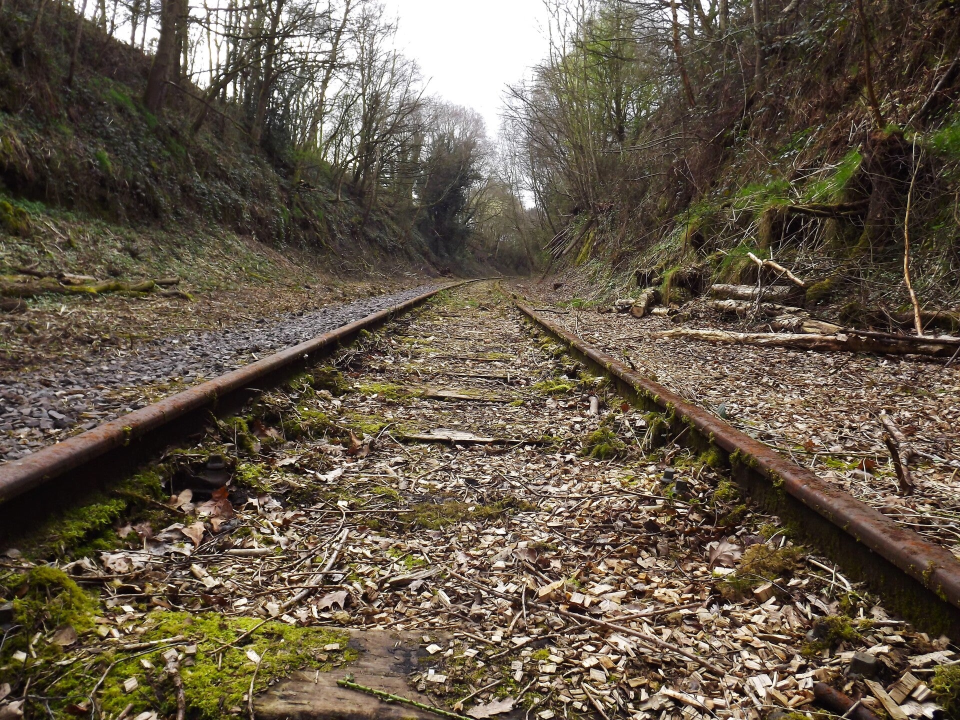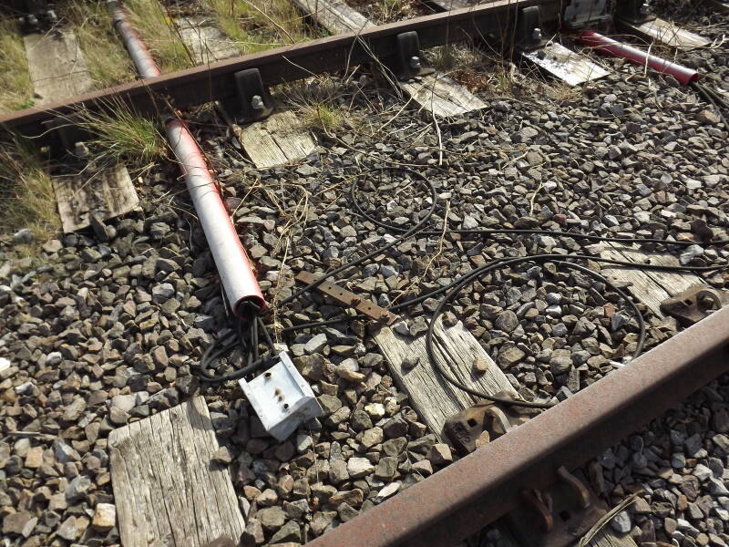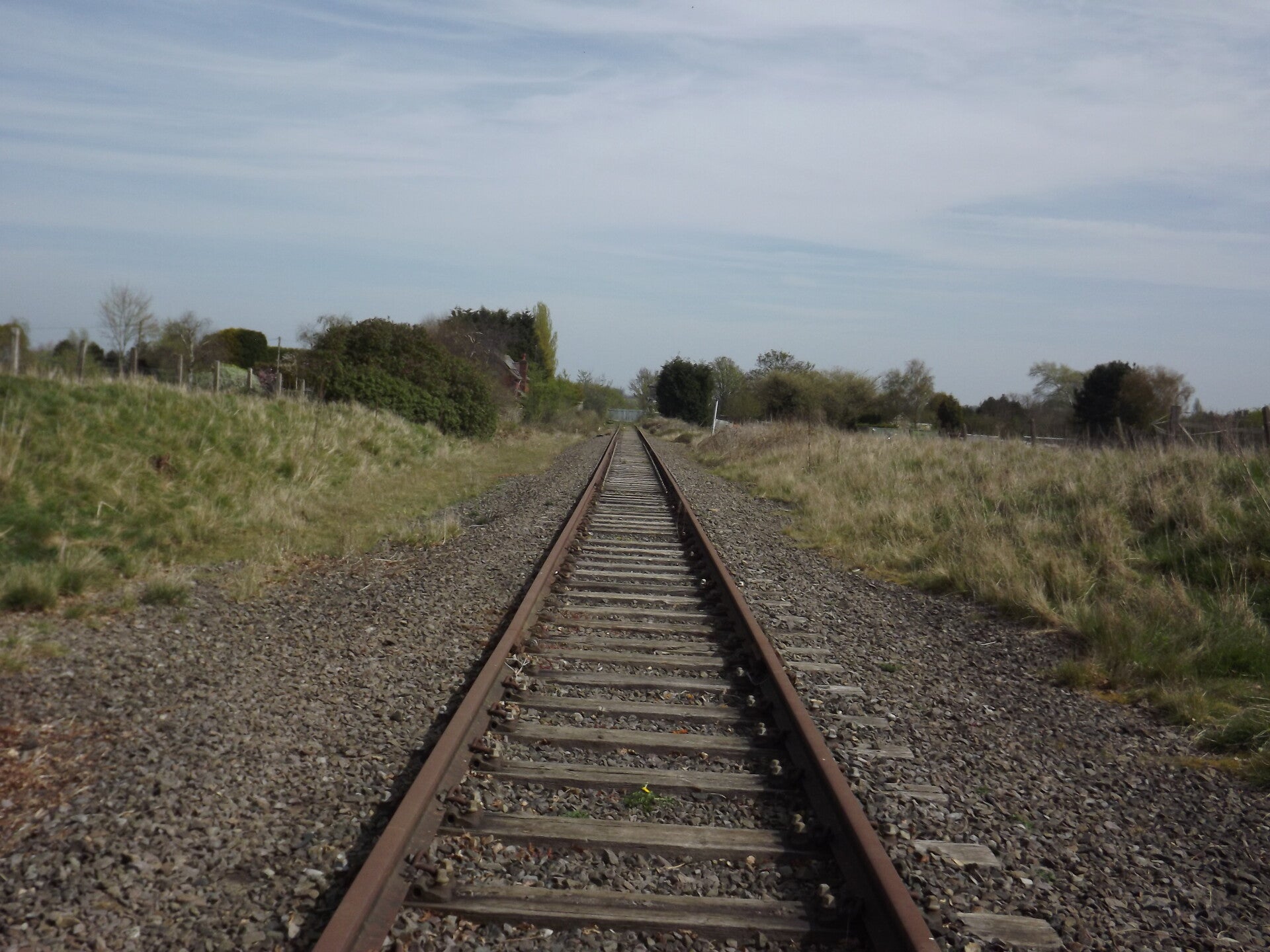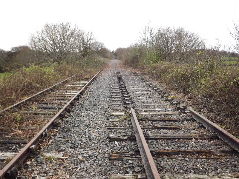 There would have been two tracks here previously (one for each direction) but along much of it there was just one at the time of photographing. That said, along these sections, you could often see some leftover sleepers and pieces of the second track, as well as the dip in the ballast where it once lay.