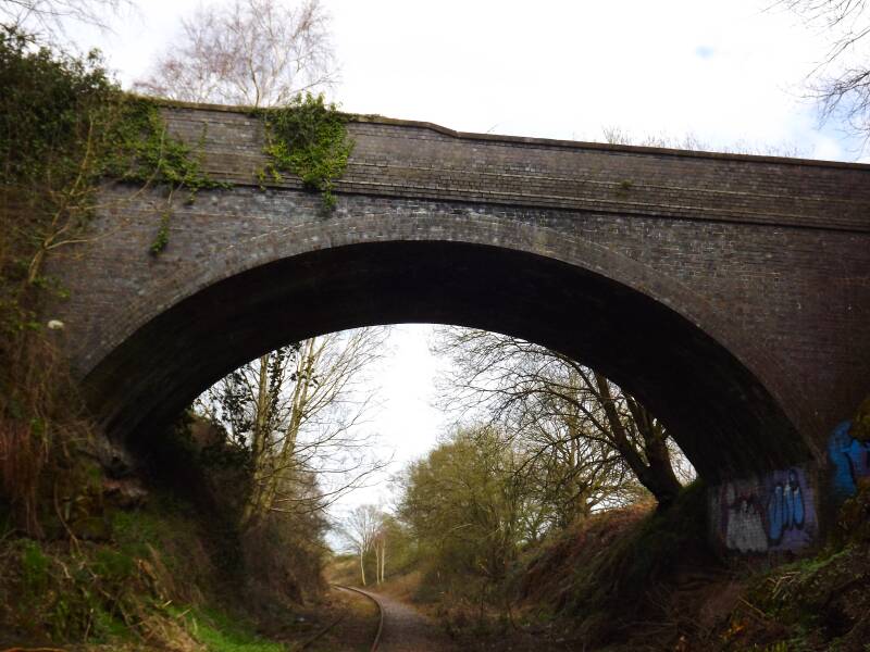 The track then curved slightly to the north, and roughly 640m from the Wall Lane bridge is the next bridge along the tracks. It takes Walsall Lane over the tracks. There would have been two tracks here as well, but at the time of photographing just one remained. It is my understanding that the second track here was ripped up in around 1986.